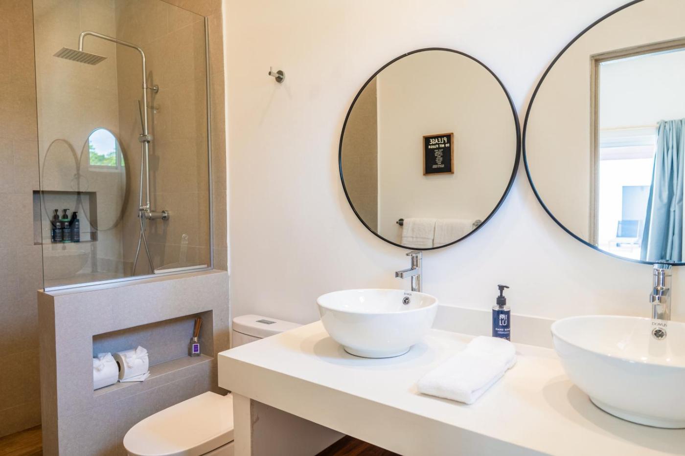 Five-Bedroom House. The private pool is the special feature of this holiday home. Featuring a private entrance, this air-conditioned holiday home comprises 1 living room, 5 separate bedrooms and 6 bathrooms with a hairdryer. Guests will find a stovetop, a refrigerator, kitchenware and an oven in the well-equipped kitchen. The holiday home also provides guests with a barbecue. This holiday home features a washing machine, a tea and coffee maker, a TV with streaming services and a patio. The unit offers 7 beds.