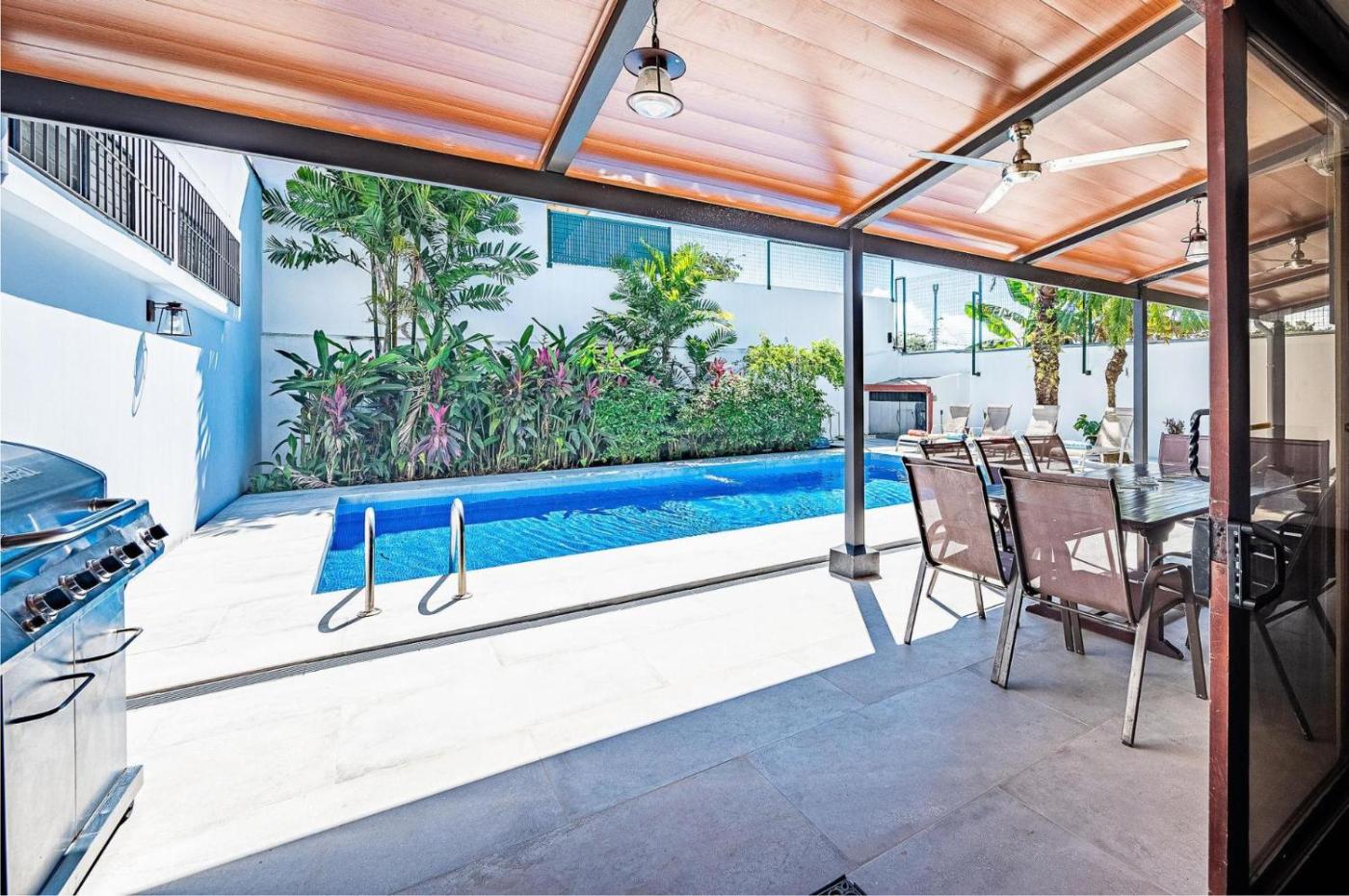 Situated in Jacó, Casa Gris in Jaco provides a restaurant and garden views, 800 metres from Jaco Beach and 5.5 km from Rainforest Adventures Jaco. The air-conditioned accommodation is 25 km from Bijagual Waterfall. The holiday home offers an outdoor swimming pool, indoor pool and a lift. Accommodation for disabled guests is also available at the property.
